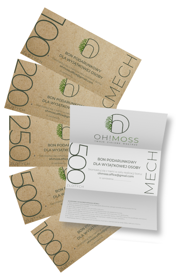 1. Bon można wykorzystać przy zakupie dowolnej usługi świadczonej przez firmę Oh!Moss Katarzyna Groth.