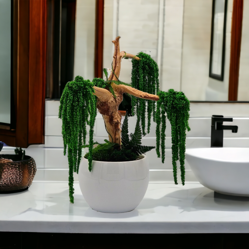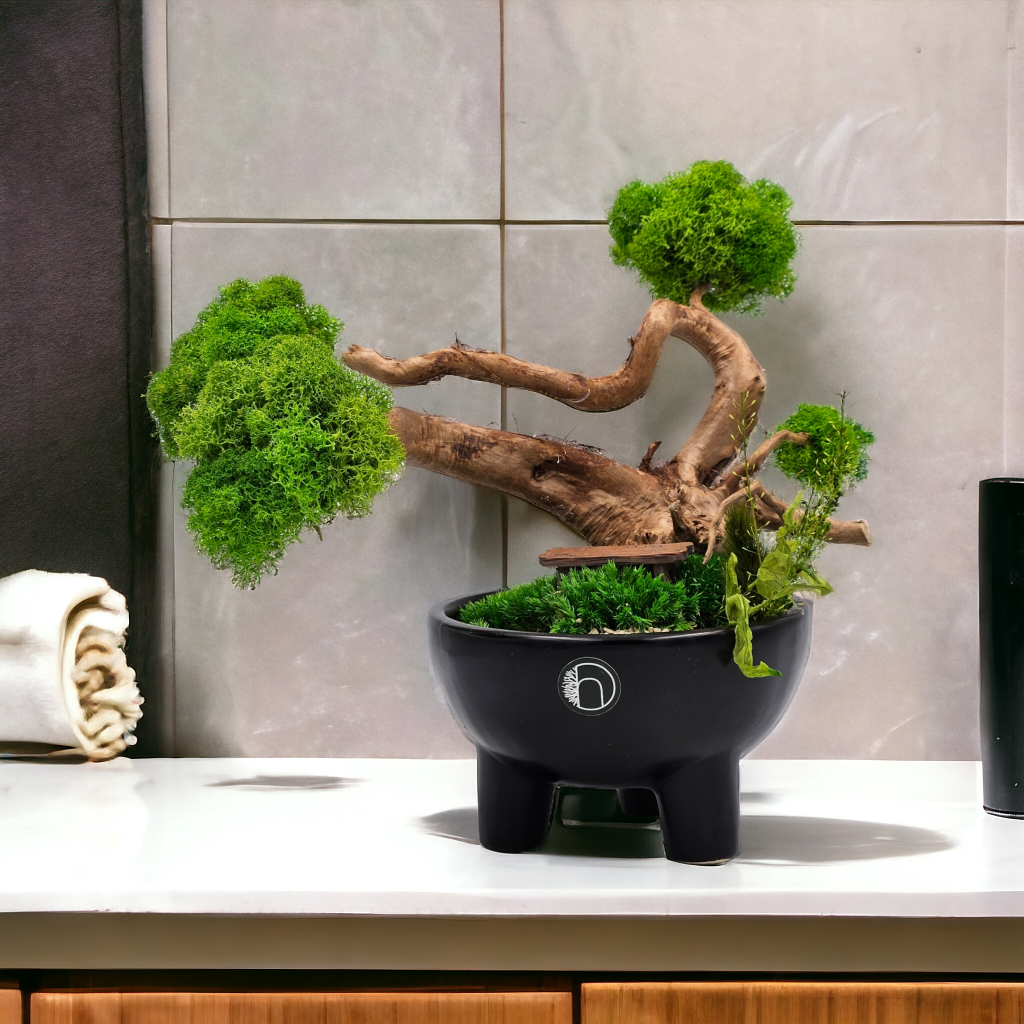 Drzewko z mchu a’la bonsai często wybierane jako prezent ślubny lub jako podziękowanie.